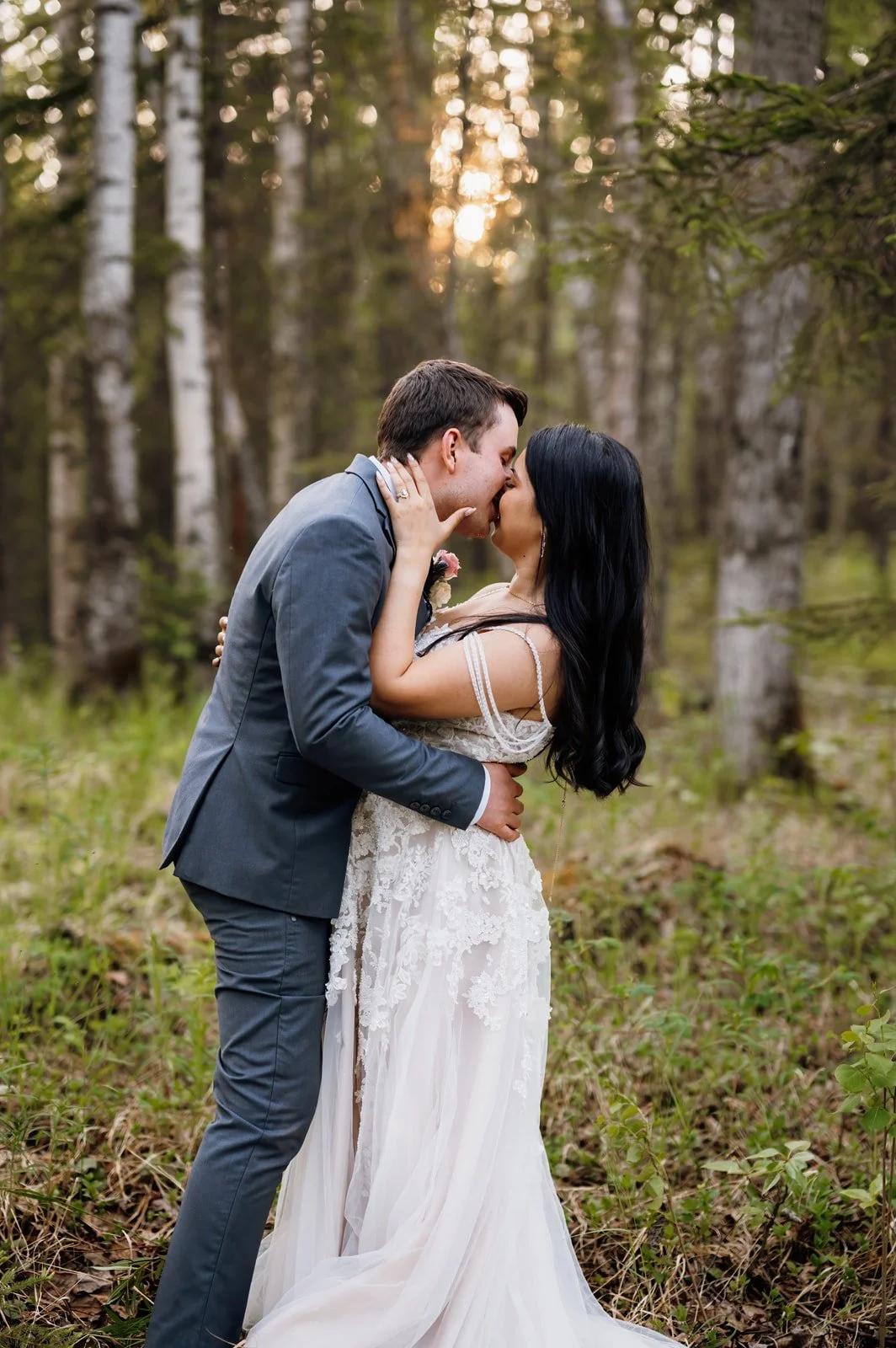 How they proposed: “He set up a romantic picnic date out in Cooper Landing. After dinner we walked along the trail. When the trail narrowed out, he let me go ahead of him. He said, “oh hey what’s this?” I turned around and he was on one knee. We both cried like babies.”